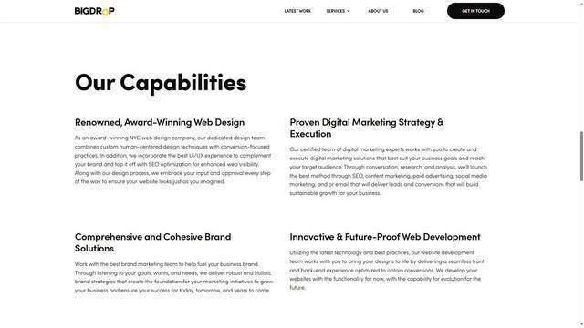 巨降设计 bigdrop是一家专注于创意营销型网站制作的专业网站建设公司,核心定位为企业提供创意导向的专业网站设计、企业网站搭建及品牌推广一体化服务,总部位于美国纽约,拥有一支由创意设计、技术开发、营销策划等跨领域专家组成的团队。该网站建设公司深耕创意营销型建站领域10余年,擅长通过创意设计与营销逻辑的深度融合,打造兼具视觉冲击力与业务转化效果的网站,适配科技、时尚、文创、服务等多个行业的建站需求,服务客户包括多个全球知名品牌与中小微企业,核心优势在于创意设计与营销效果的双重保障。